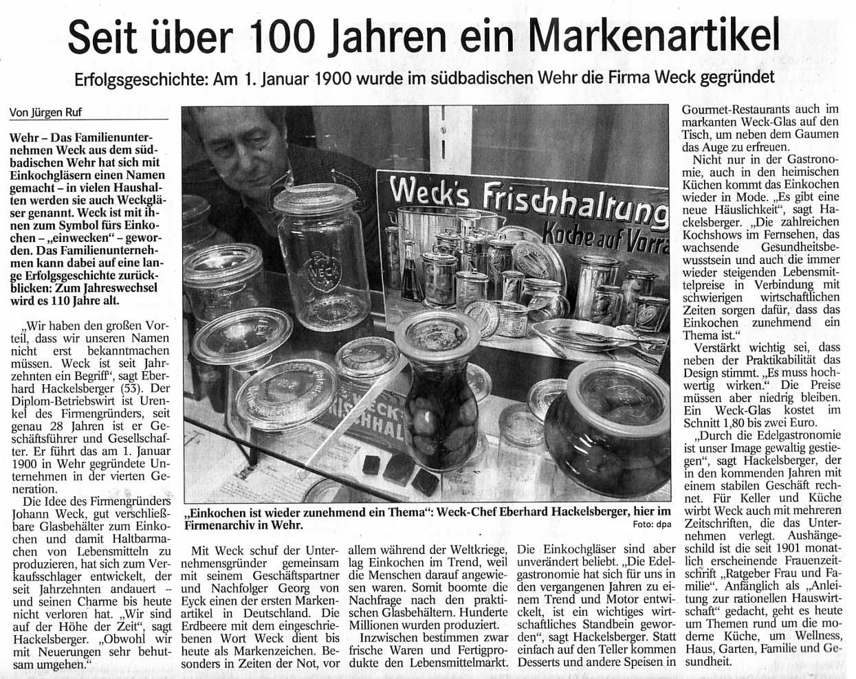 Die Firma Weck gibt es seit 100 Jahren,
