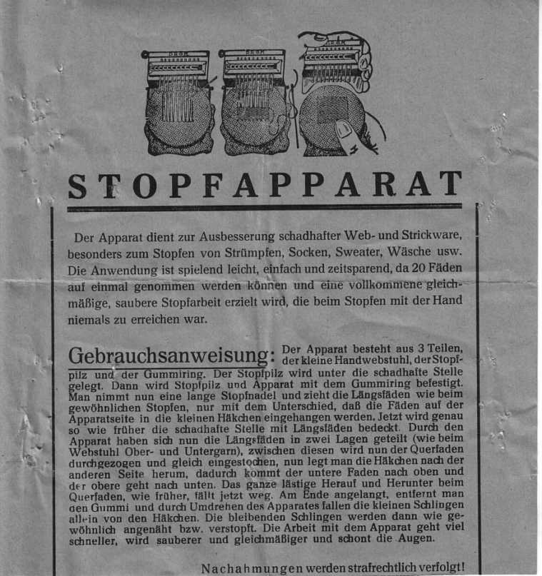 Einen "Stopfapparat" oder "Stopfwebapparat"