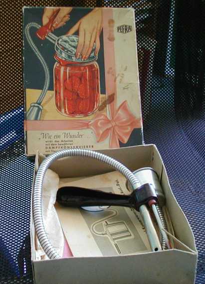 hält man in das Einmachglas. Der Dampf tötet die Keime ab