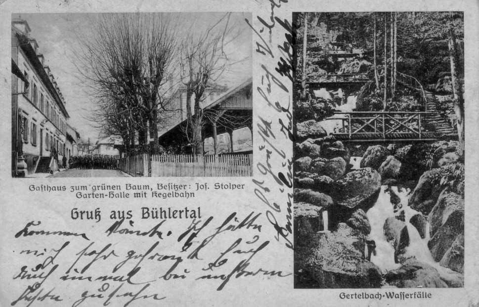 Grüner Baum und Gertelbachfälle - locken ins Bühlertal der 20iger Jahre
