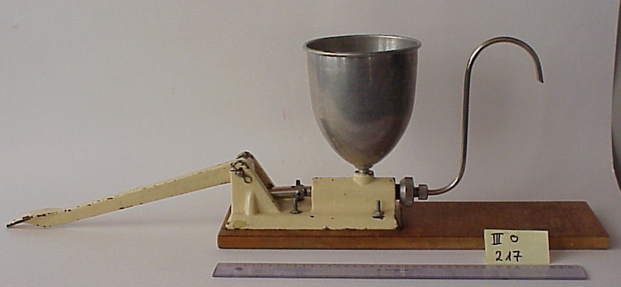 Fassungsvermögen hat. Beim Anheben des Handhebels wird der waagrecht