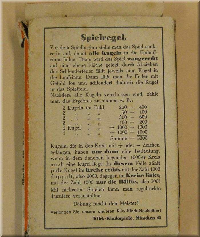 Klack Spiele Fabrik G & A Rosenfeld produziert. Im Zweiten Weltkrieg wurde