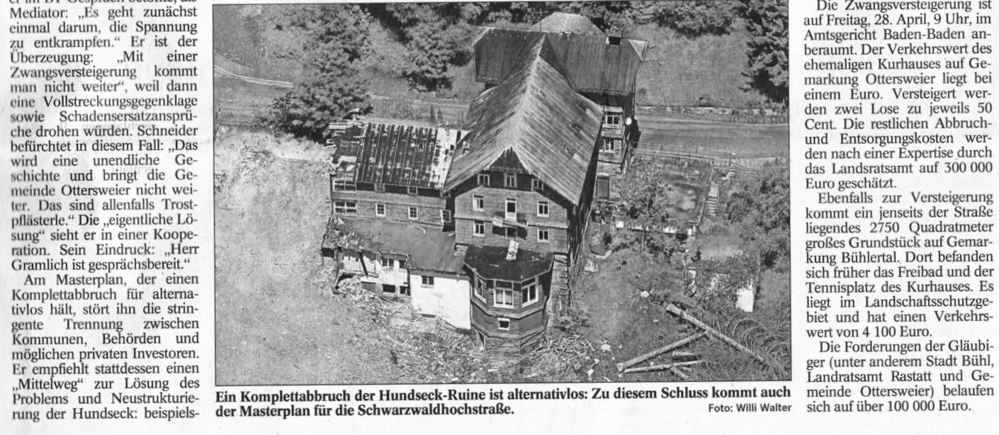 Hammer wird wohl kaum fallen - Zwangsversteigerung Hundseck am 28.4.17