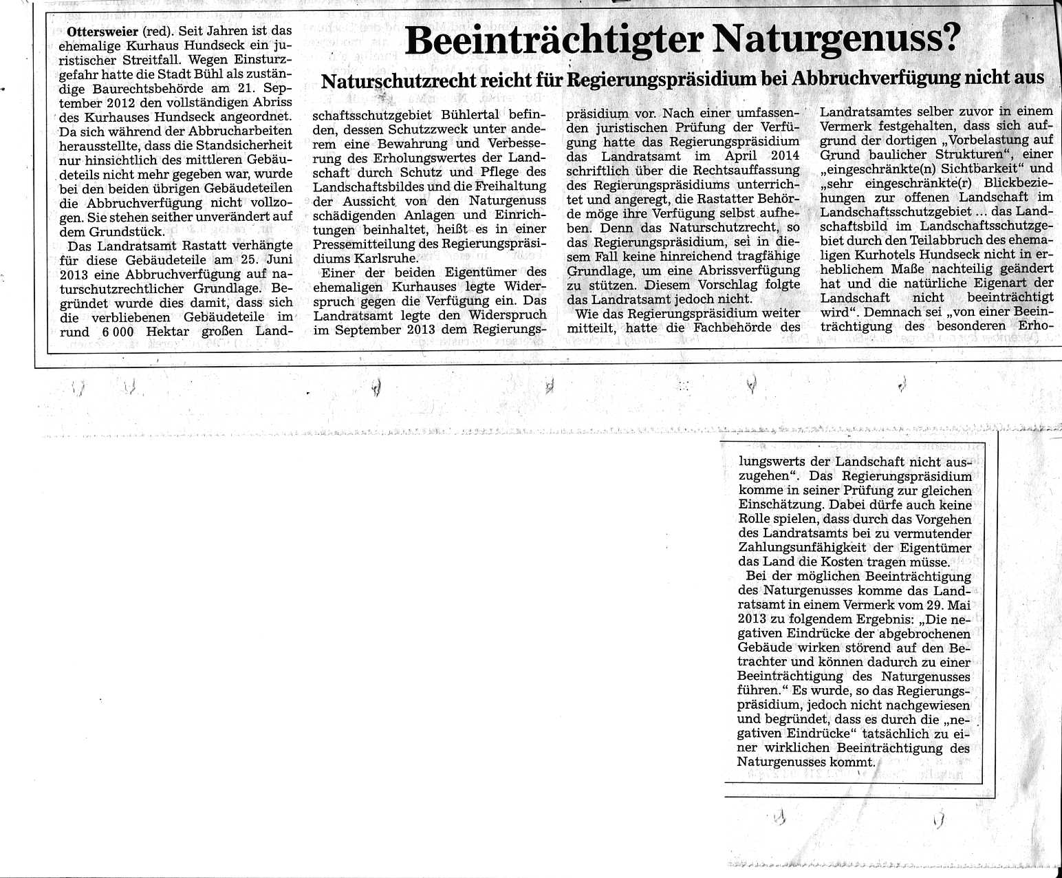 die Verhandlung gegen die Eigentümer des ehemaligen Kurhauses Hundseck