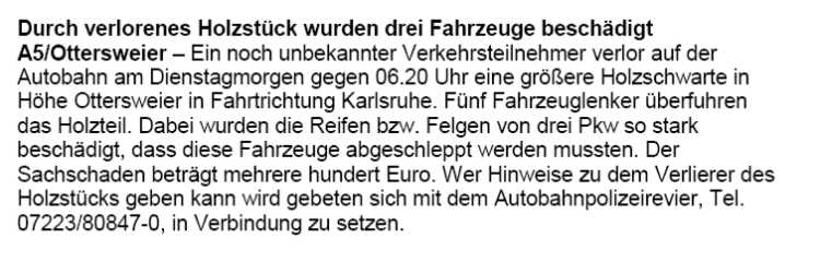 wegen der Schlaglöcher die Autobahn Richtung Karlsruhe in der kommenden