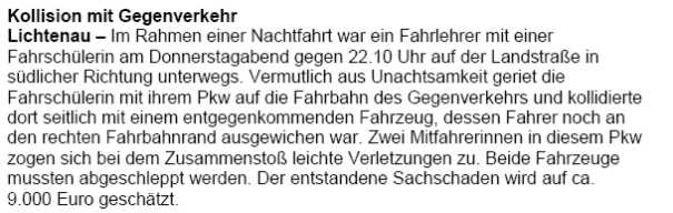 30.10.2010 - Dabei wurde zwischen Hausach und Gutach ein Fußgänger