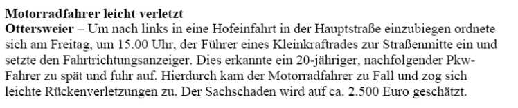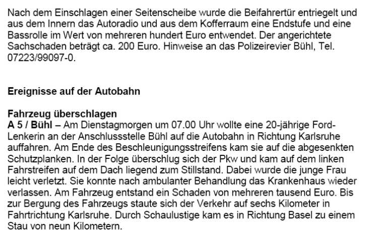 Baden-Baden (mr) Eine 20-jährige Pkw-Fahrerin kam am Sonntag,