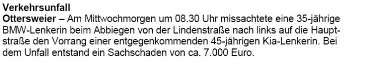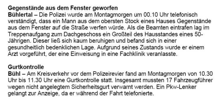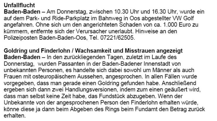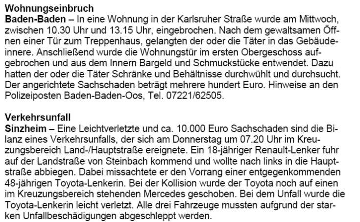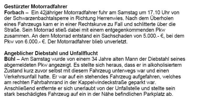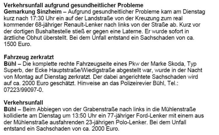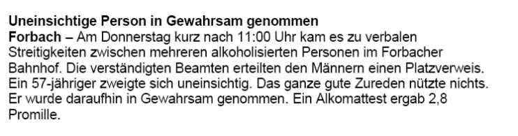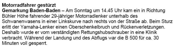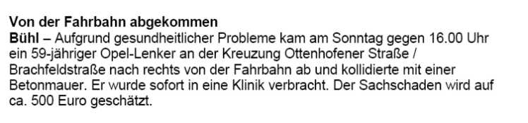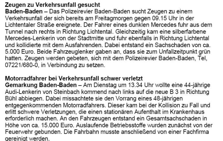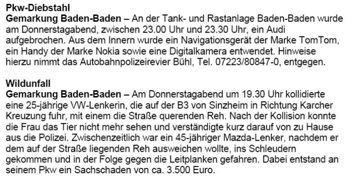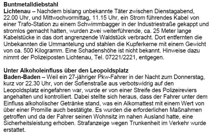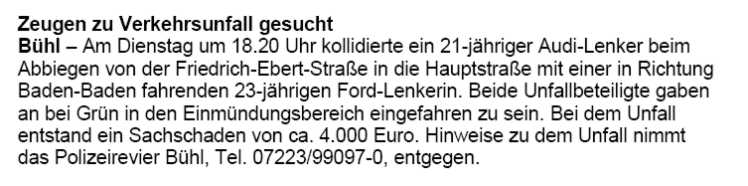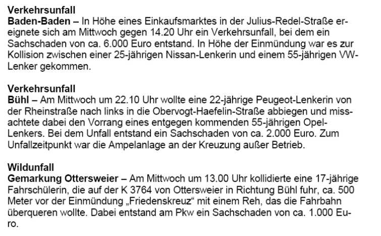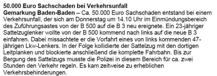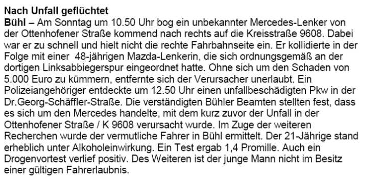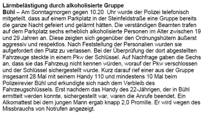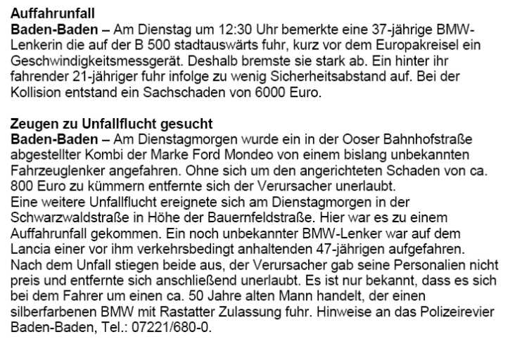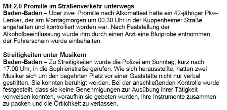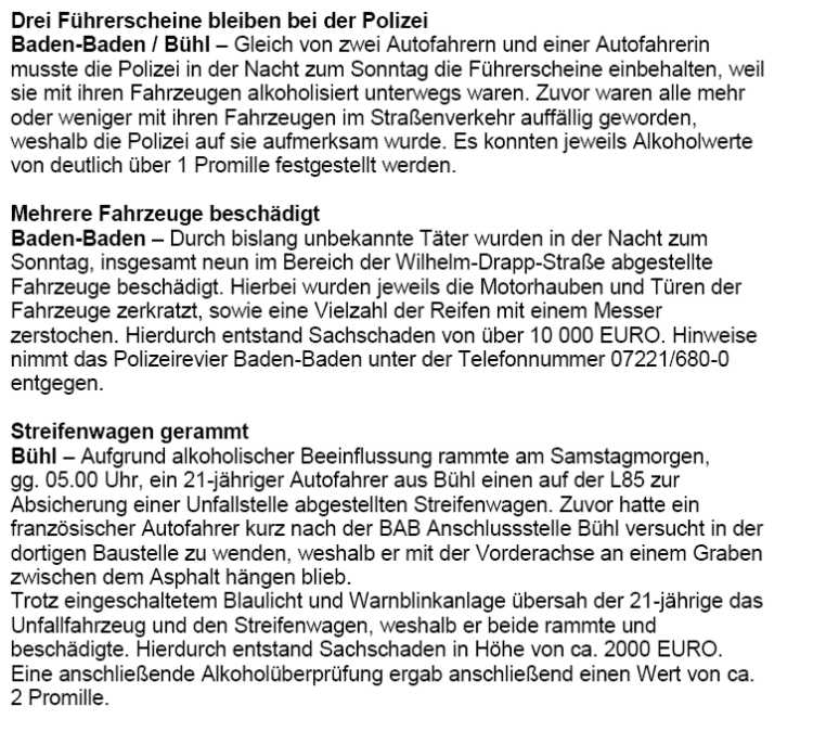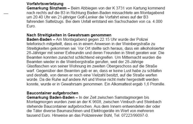 Bei der Unfallaufnahme in Baden-Baden wurde als Ursache alkoholische Beeinflussung