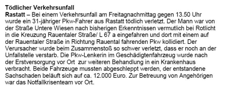 vor Ort an seinen schweren Verletzungen. Wie Ermittlungen der Polizei ergaben,