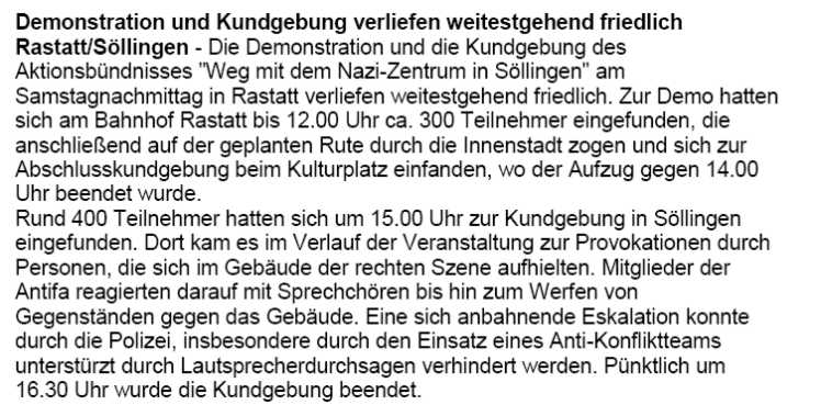 bei der Demonstration gestern gegen Stuttgart 21 reagiert. Aufgrund politischer
