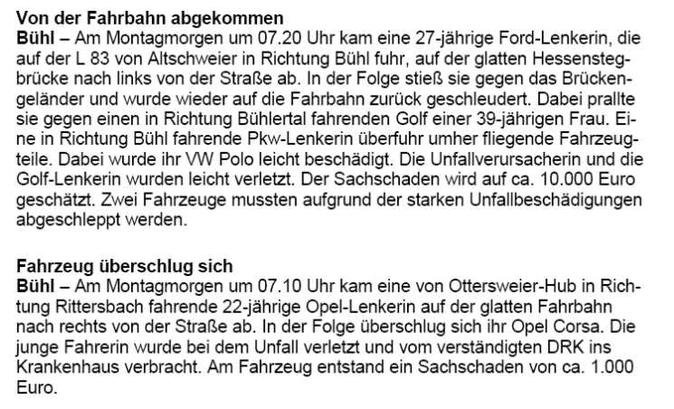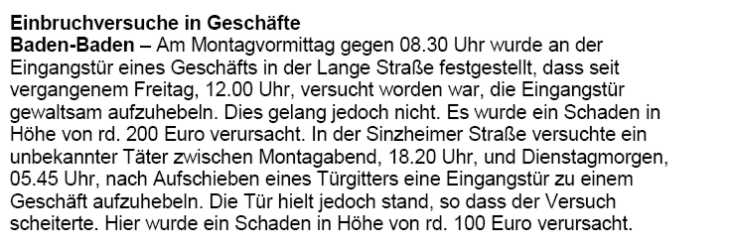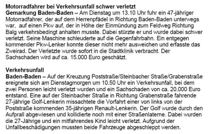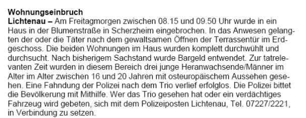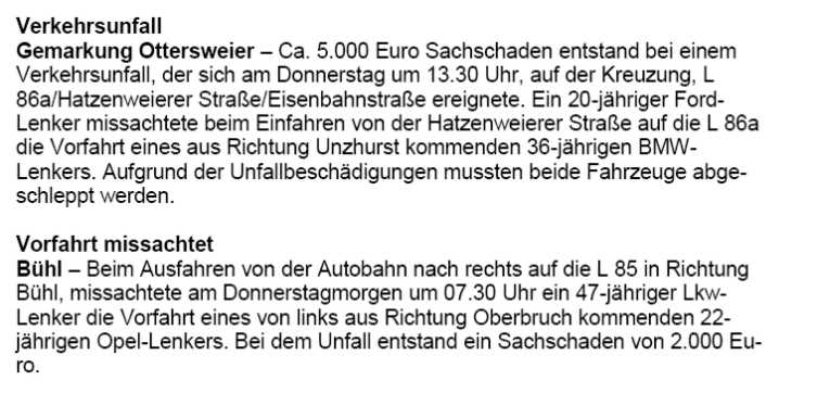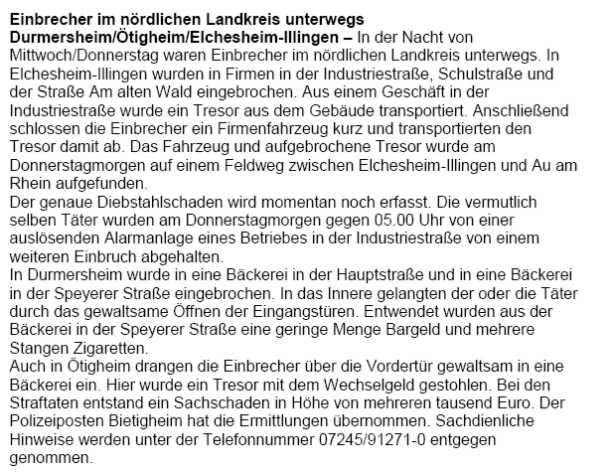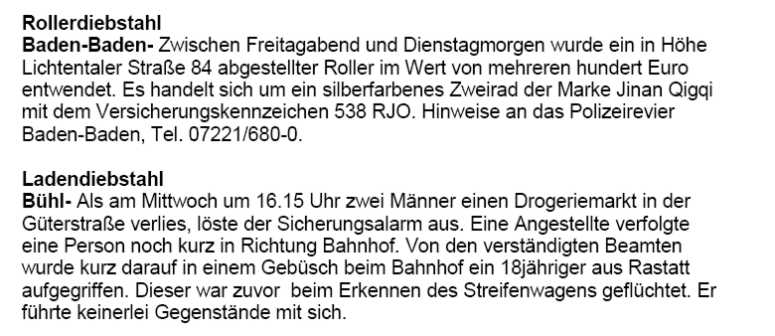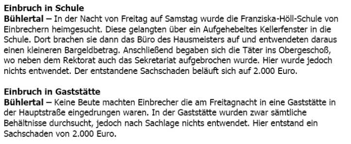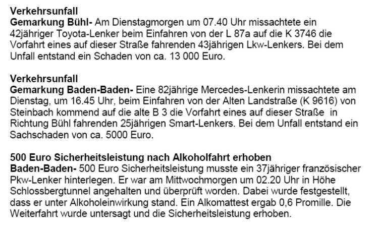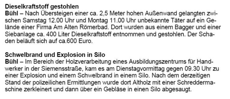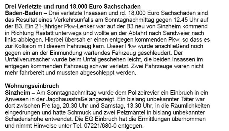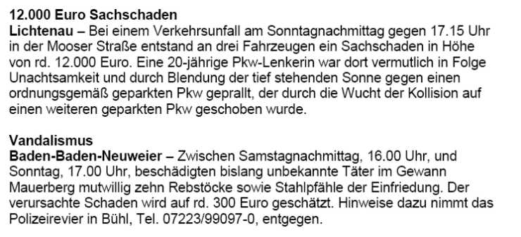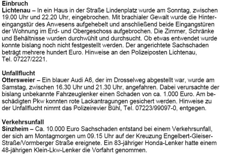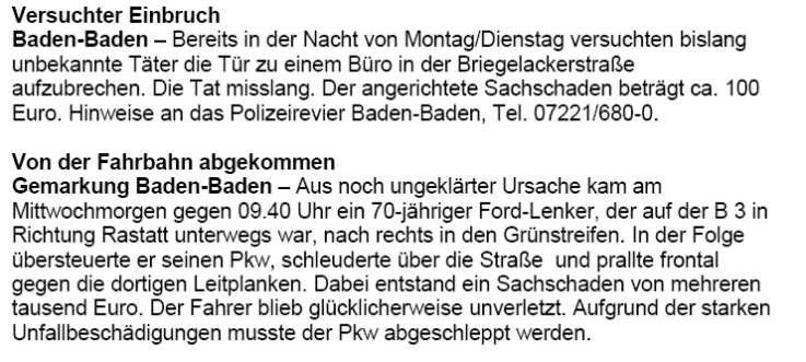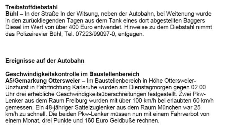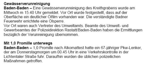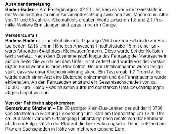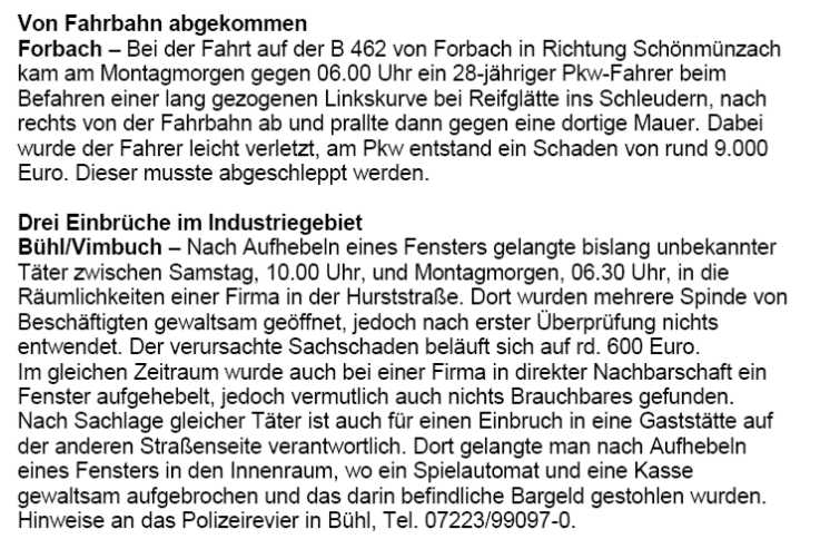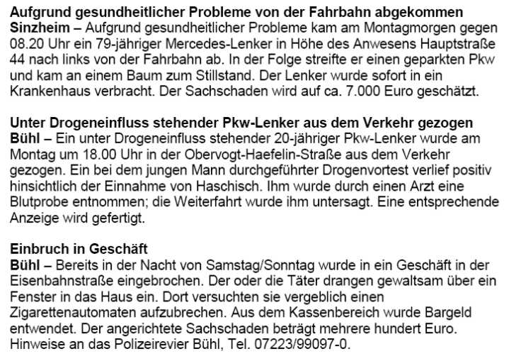 Polizeimeldungen