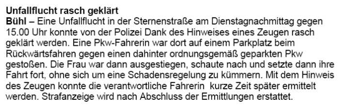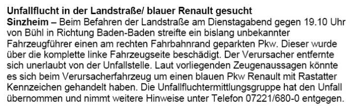 in Renchen den Außenspiegel eines geparkten Fahrzeugs und verursachte