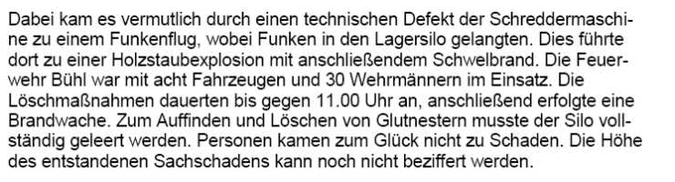 die darin befindliche Korrespondenz. Der Schaden in Oberkirch wird mit