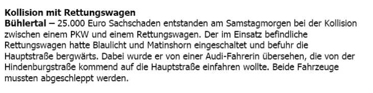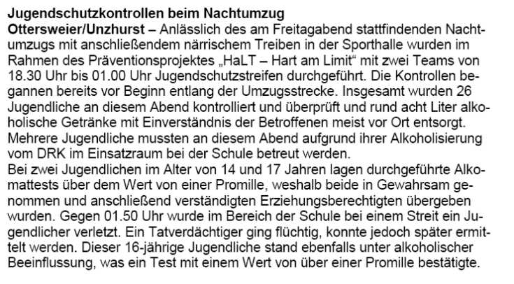 auch im Ortenaukreis Polizei und Rettungsdienste fast an jedem Wochenende.