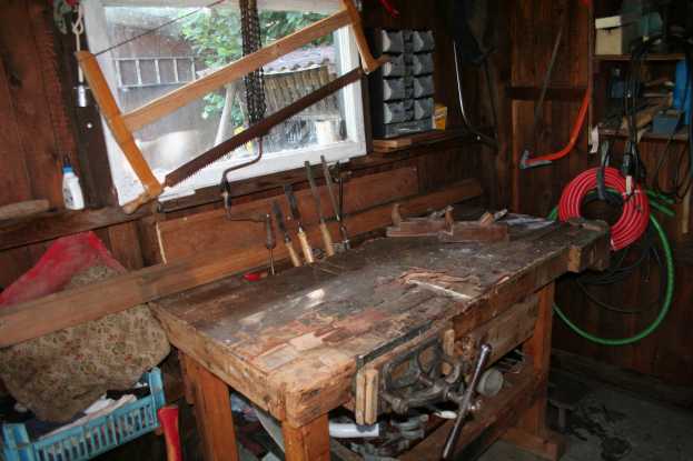Anm.: Sein Sohn hat an dieser Werkbank u.a. einen großen, sechseckigen Tisch und die dazu passenden Stühle gefertigt.