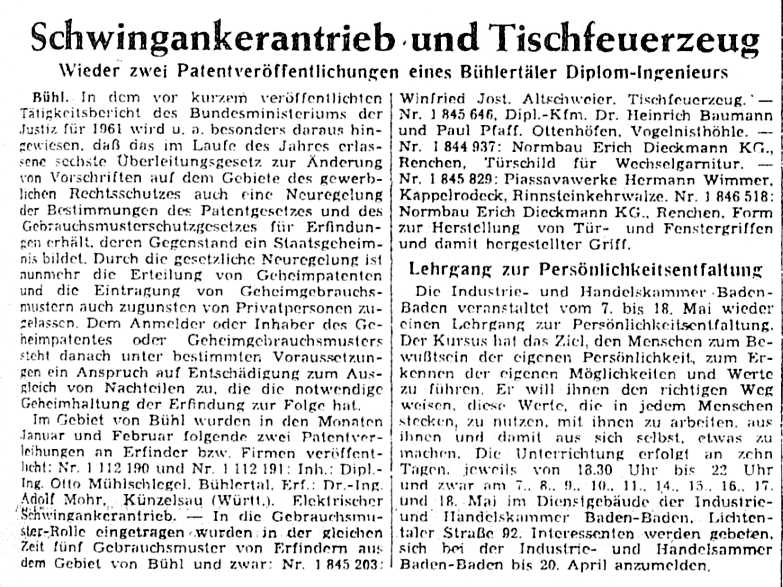 Neue Patente von Otto Mühlschlegel
